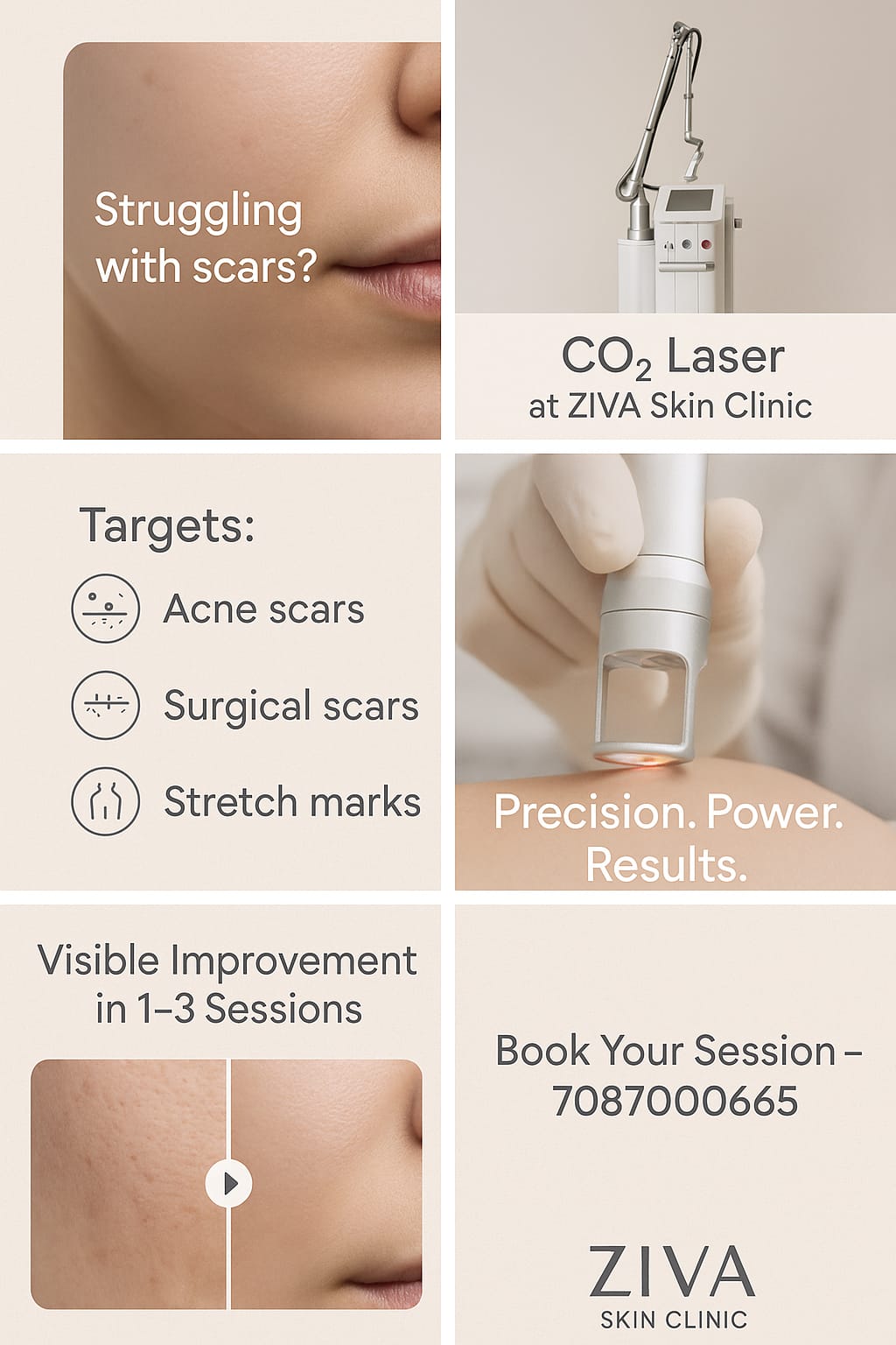 Ziva Skin Clinic provide advanced treatment for acne, acne scars, pigmentation, melasma, hair fall, CO₂ laser treatment, laser hair reduction, Medifacials, anti-aging treatments and other dermatological conditions. At Ziva Skin Clinic, all procedures are performed or closely supervised by a qualified dermatologist, ensuring safe, ethical, and medically sound treatments.