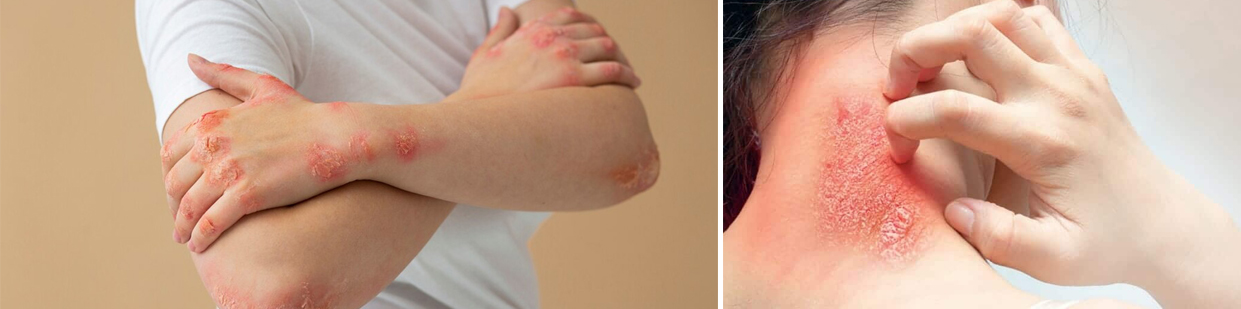 Psoriasis is a chronic (long-term) autoimmune skin condition that causes red, thick, scaly patches on the skin. It commonly affects the scalp, elbows, knees, lower back, and nails.